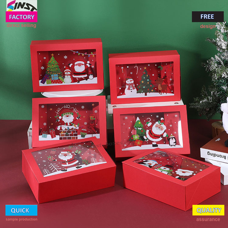 Hộp kẹo Giáng sinh này có nền màu đỏ ấm áp, thân hộp hình chữ nhật và cửa sổ trong suốt, giống như cửa sổ để bạn ngắm nhìn câu chuyện cổ tích mùa đông. Hộp kẹo Giáng sinh này được làm bằng chất liệu giấy cứng, có thể trưng bày kẹo bên trong và có độ ổn định nhất định. Nó có thể thích ứng với các món hàng ngày như sô cô la, món tráng miệng, bánh quy, kẹo dẻo, v.v; Nó không chỉ là một hộp đựng kẹo dễ thương mà còn là một vật trang trí Giáng sinh trên máy tính để bàn. Đưa nó cho mọi người để sử dụng cá nhân có thể làm tâm trạng ngày lễ trở nên tươi sáng hơn, khiến mọi ngọt ngào đều được gói gọn trong cảm giác nghi lễ.