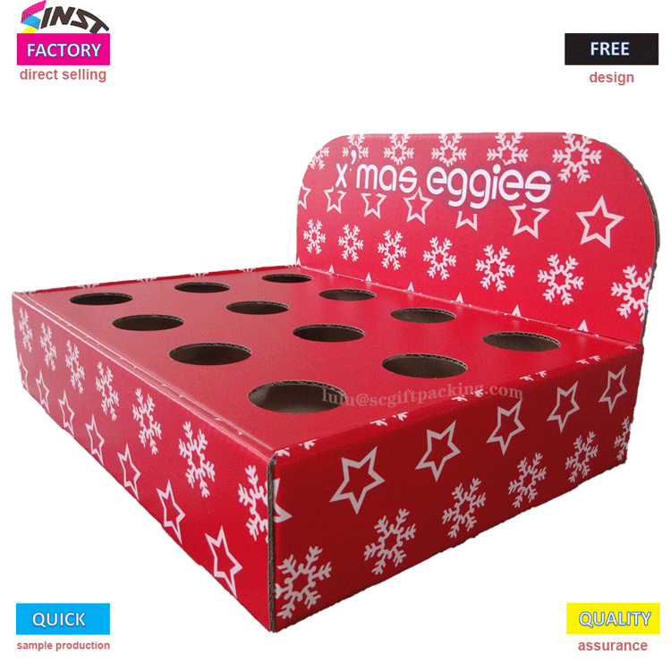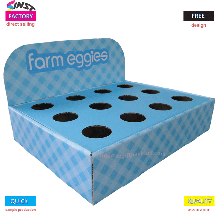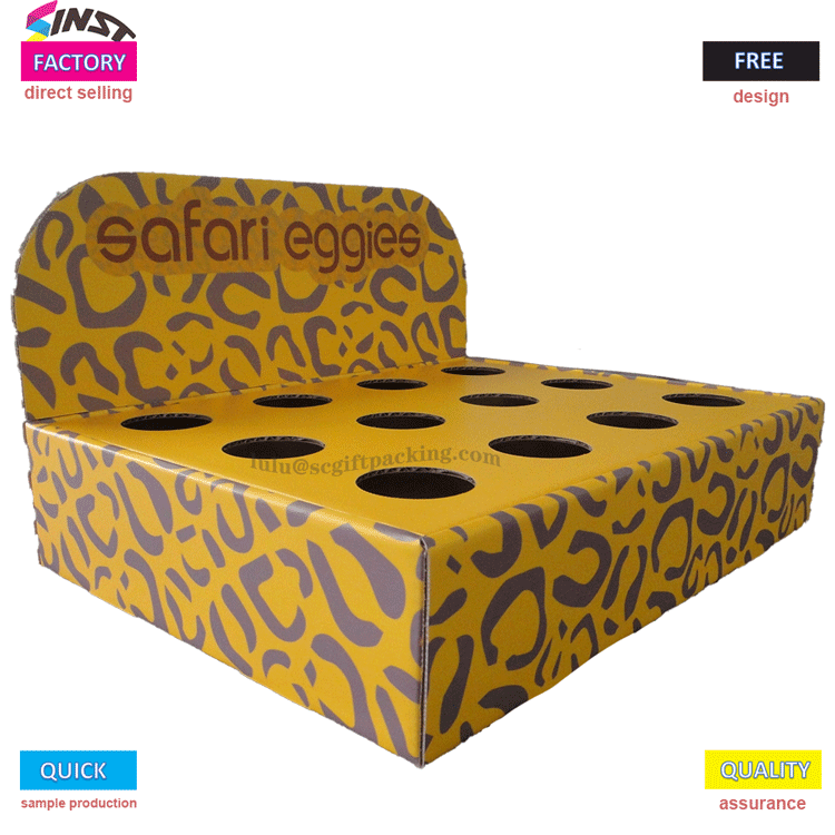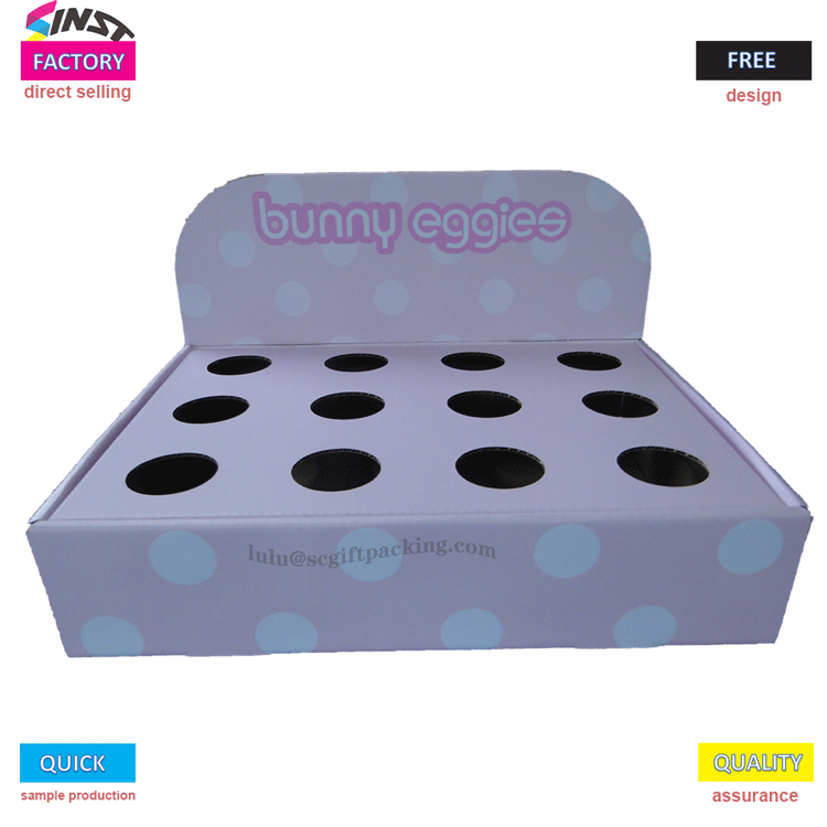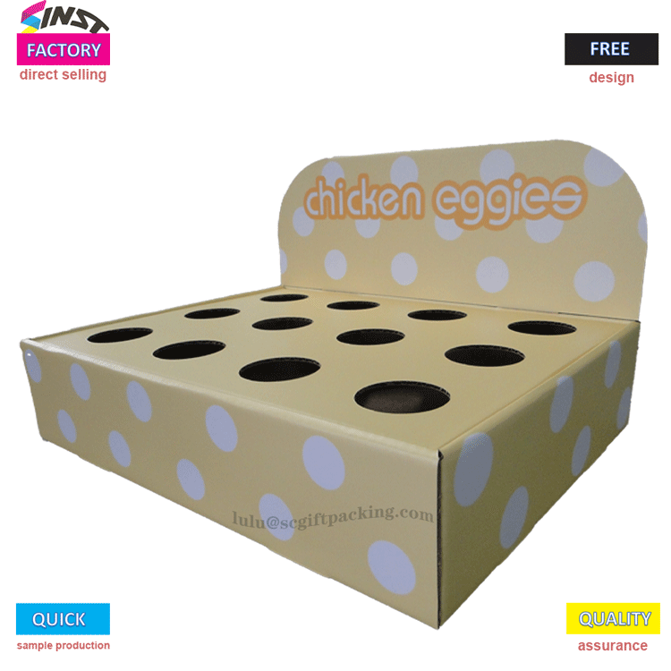 Giá trưng bày bằng bìa cứng để bàn cho Trứng có thể được tùy chỉnh dựa trên hình ảnh thương hiệu và nhu cầu quảng cáo, với logo thương hiệu, thông tin khuyến mại, v.v. được in trên đó. So với các vật liệu khác, kệ trưng bày bằng bìa cứng thường có chi phí thấp hơn. Những kệ trưng bày này có thể được nhìn thấy trong các siêu thị, cửa hàng tráng miệng, cửa hàng quà tặng và những nơi khác, đồng thời chúng giúp nâng cao doanh số bán hàng và hình ảnh thương hiệu của trứng.