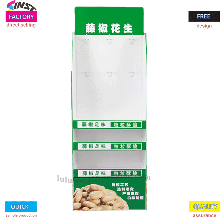 Giá trưng bày bìa cứng thực phẩm trái cây sấy khô phù hợp cho nhiều địa điểm bán lẻ khác nhau như siêu thị, cửa hàng tiện lợi, cửa hàng tạp hóa cũng như các sự kiện khuyến mại cho sản phẩm đậu phộng.