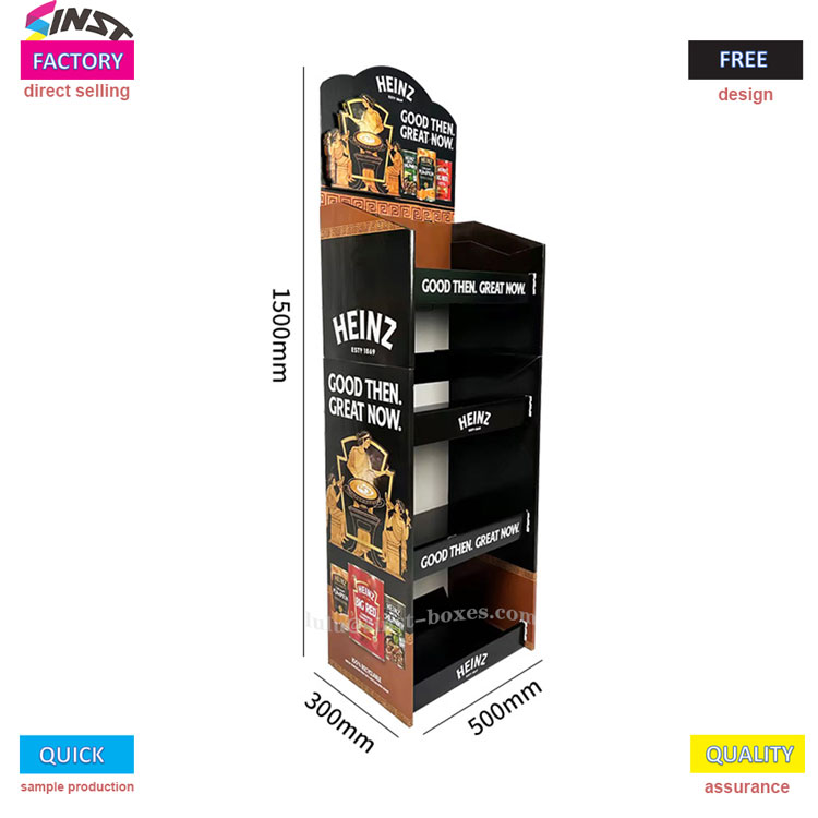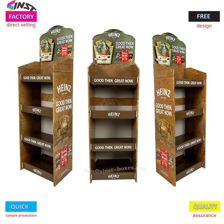 Kệ trưng bày nước sốt cà chua này là “trợ thủ nhỏ” cho các siêu thị, cửa hàng tiện lợi trưng bày nước sốt. Nó thuộc loại giá trưng bày nước sốt, được làm bằng giá trưng bày bằng giấy bìa cứng, nhẹ và dễ mang theo. Nó có thể được sử dụng ngay khi được giải nén và đặt trên quầy. Kệ được chia thành bốn lớp, mỗi lớp có thể chứa hai hàng chai nước sốt cà chua, ngoài ra còn có thể có một ít nước sốt salad và nước sốt cay ngọt nhồi bên cạnh - gọi là "kệ trưng bày nước sốt cà chua", nhưng cũng có thể dùng làm kệ đựng nước sốt. Nó phù hợp để đặt nó trong khu vực gia vị của một siêu thị nhỏ.